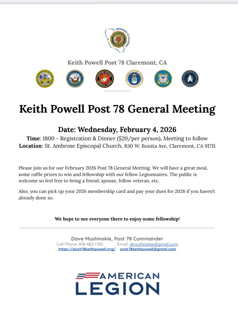 Post 78 email address – post78keithpowell@gmail.com